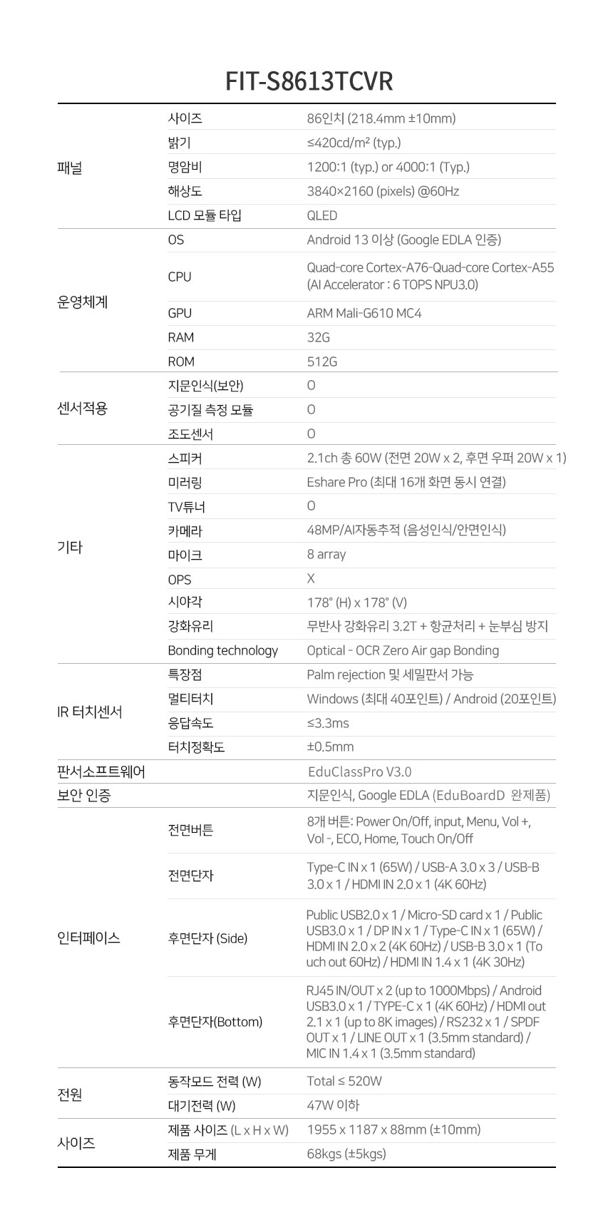 FIT-S8613TCVR QLED ÀÎÅÍ·¢Æ¼ºê È­ÀÌÆ®º¸µå
